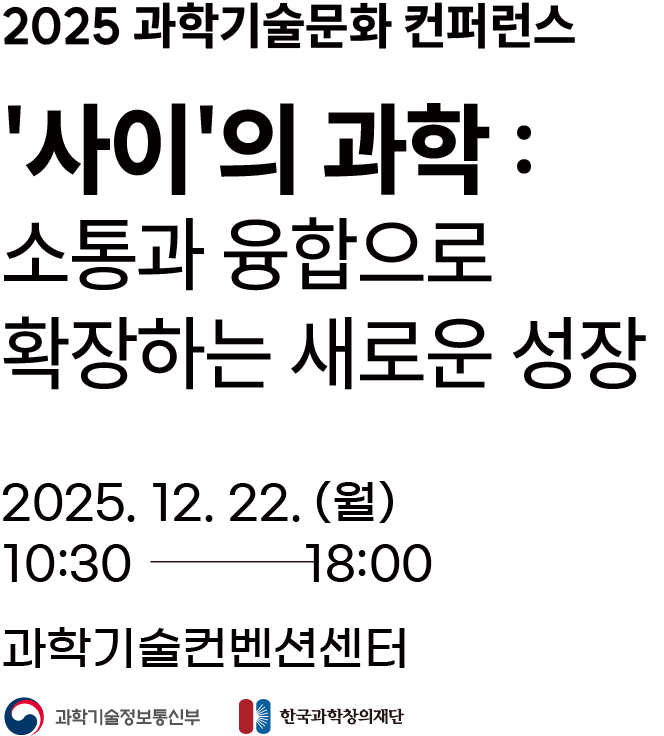 (06130) 서울특별시 강남구 테헤란로7길 22, 4~5층(역삼동, 과학기술회관 2관) 한국과학창의재단 Copyright © 2025 과학기술문화 컨퍼런스. All rights reserved.